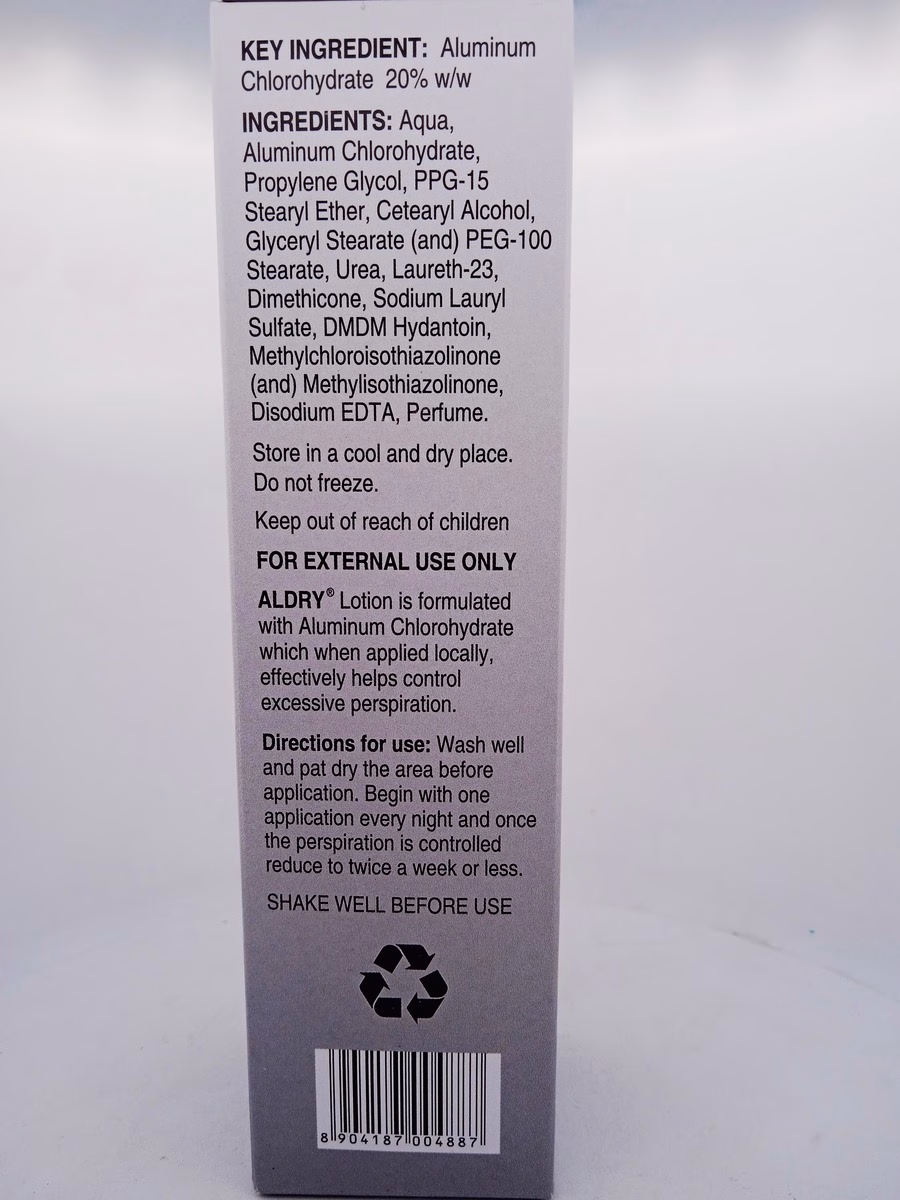 ALDRY LOTION works by inhibiting sweat production in targeted areas through its active ingredients. It also reduces bacterial growth, which is a primary cause of sweat odor. By controlling both perspiration and odor, it ensures a fresh and dry experience throughout the day.
