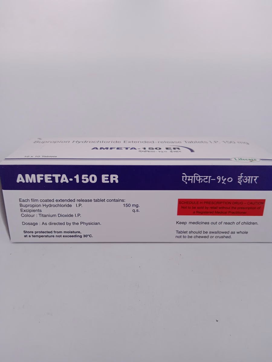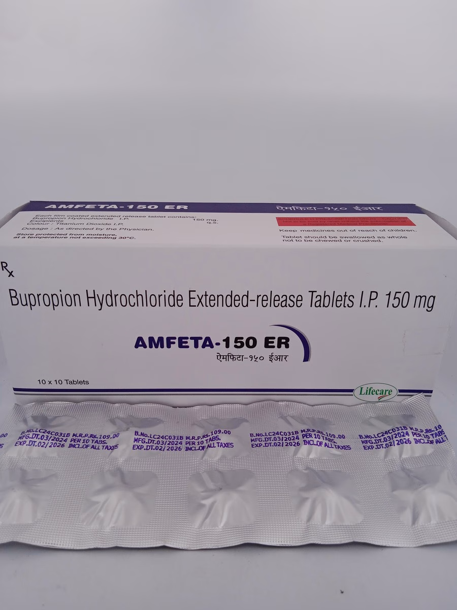 AMFETA-150 ER contains bupropion, an atypical antidepressant that works on the neurotransmitters dopamine and norepinephrine in the brain. This medication is indicated for the treatment of major depressive disorder and is also effective in helping individuals quit smoking by reducing withdrawal symptoms and cravings. Its extended-release formulation allows for once-daily dosing, enhancing patient compliance and making it a convenient choice for long-term management.