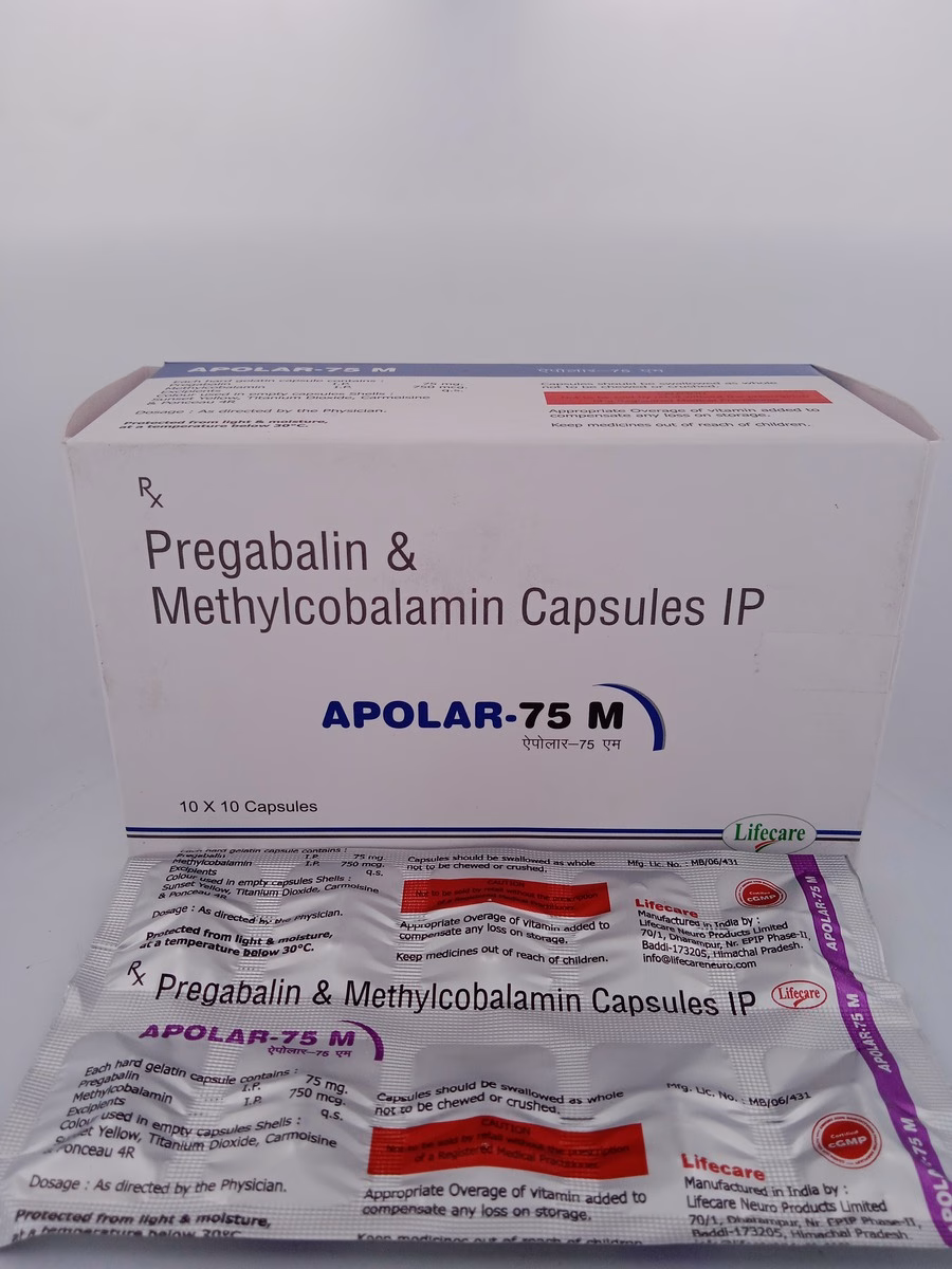 APOLAR 75 M works by modulating neurotransmitter levels, stabilizing nerve activity, and reducing the perception of pain associated with neuropathy.