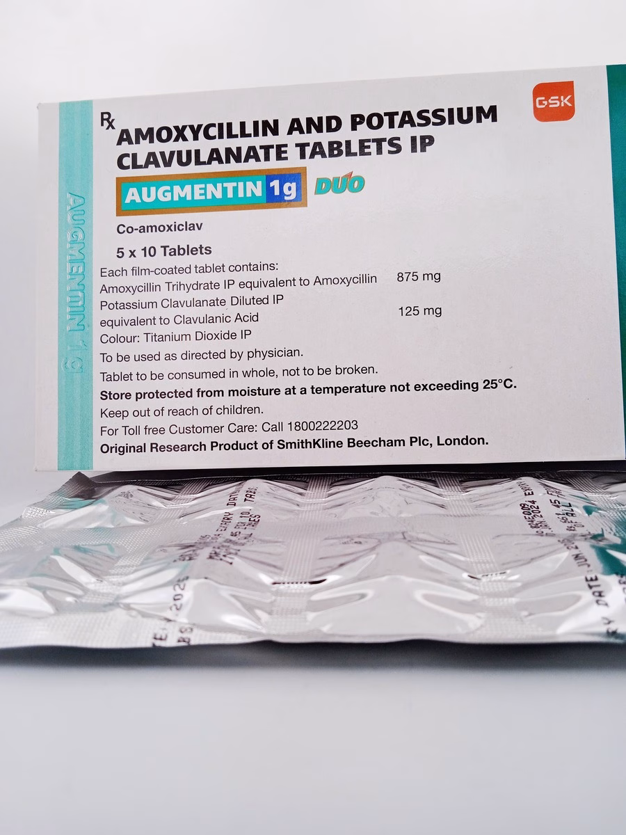 AUGMENTIN 1 G DUO combines amoxicillin and clavulanic acid in a powerful formulation to fight bacterial infections. Amoxicillin, a broad-spectrum penicillin-type antibiotic, works by inhibiting bacterial cell wall synthesis, while clavulanic acid helps overcome bacterial resistance. This duo provides comprehensive infection control, making AUGMENTIN 1 G DUO a reliable choice for effective treatment.
