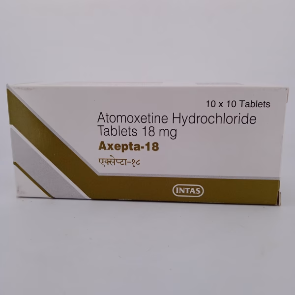 Mechanism of Action: Atomoxetine in Axepta 40 mg inhibits norepinephrine reuptake, increasing its availability in the brain. This mechanism enhances neurotransmission in key brain regions involved in attention regulation and impulse control, leading to improved focus and reduced hyperactivity.