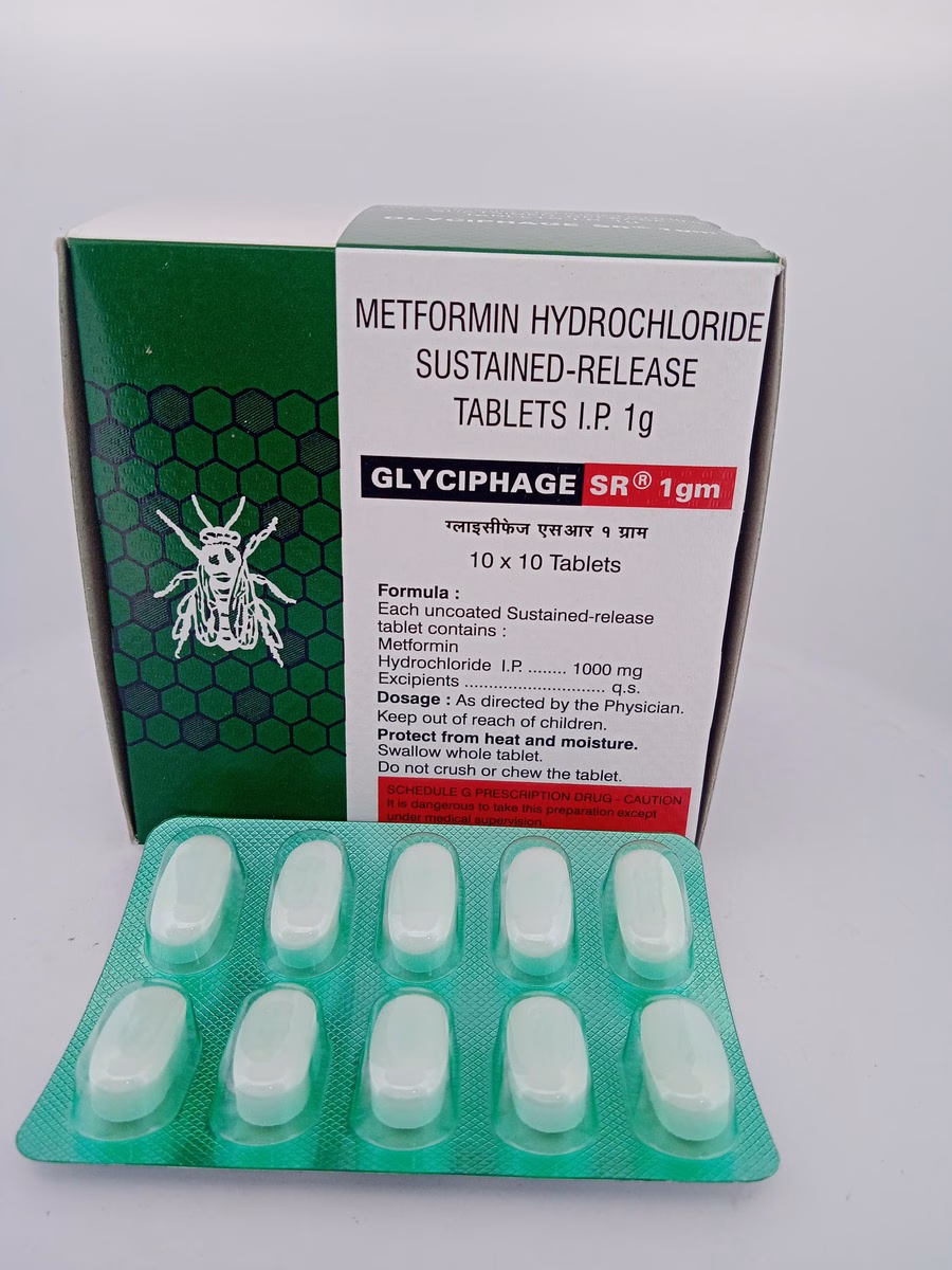 A: GLYCIPHAGE SR 1000 MG is a sustained-release form of Metformin, providing a gradual release of the medication to ensure consistent blood sugar control with fewer side effects.