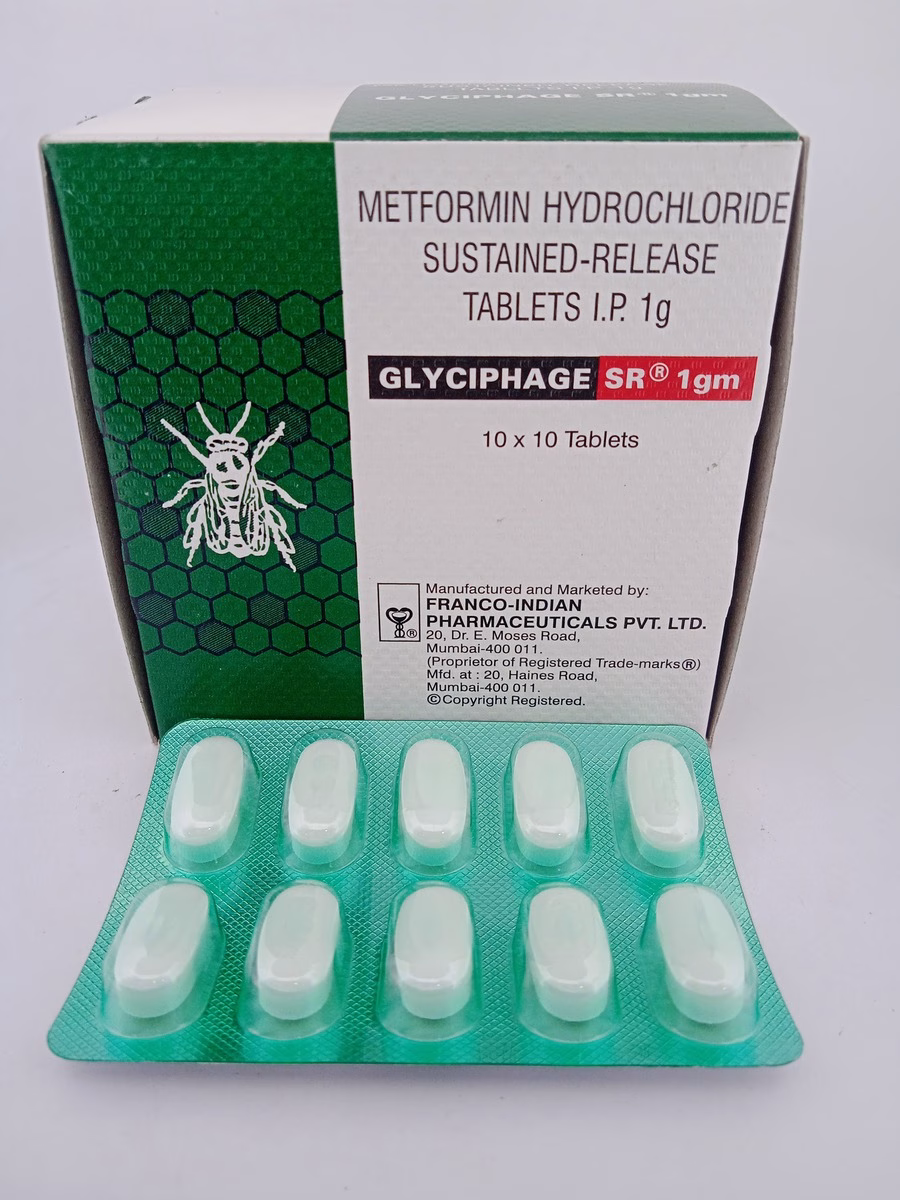 GLYCIPHAGE SR 1000 MG works by slowly releasing Metformin into the bloodstream, where it lowers glucose production in the liver, increases insulin sensitivity, and decreases glucose absorption in the intestines. This sustained-release action provides prolonged blood sugar control, crucial for managing Type 2 diabetes effectively.