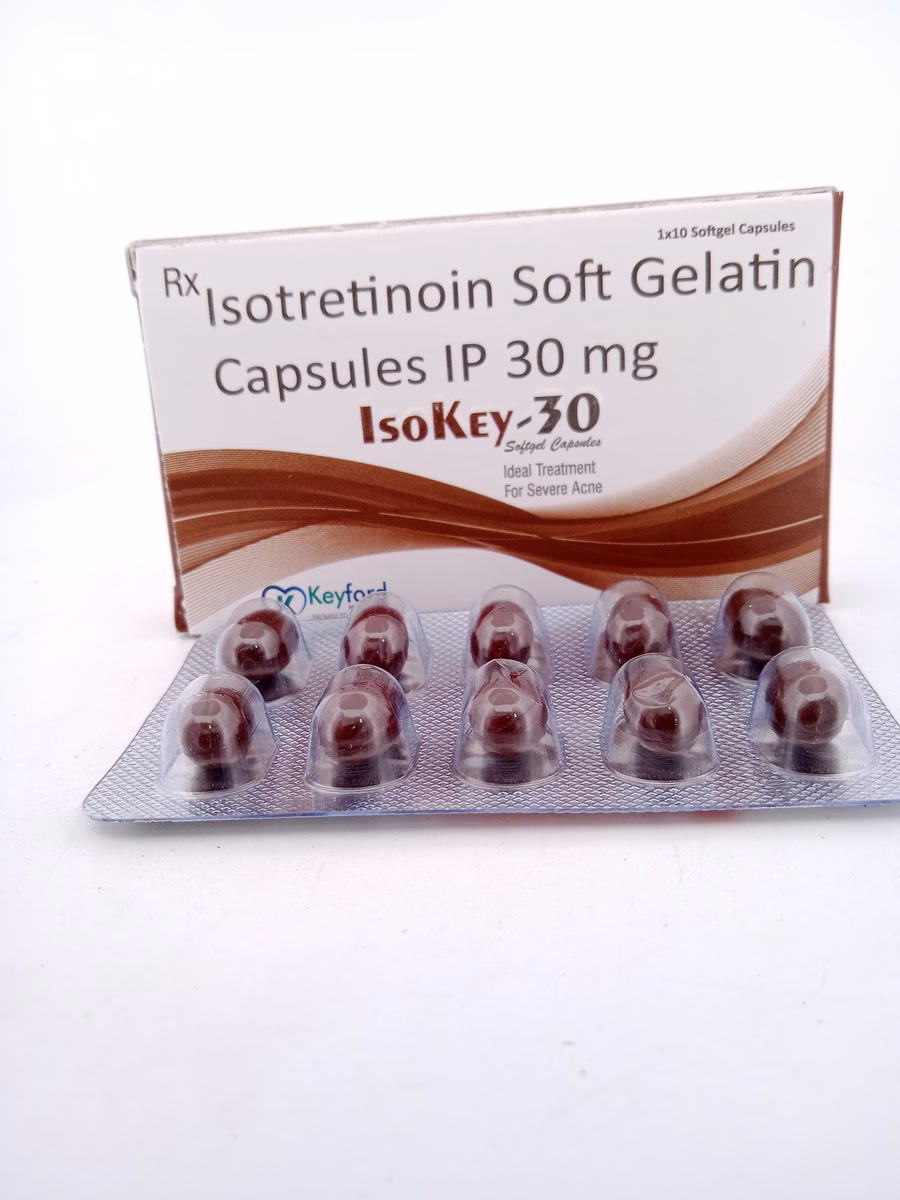 Preventing comedone formation: Isokey 30 mg promotes the shedding of dead skin cells, preventing the formation of comedones (blackheads and whiteheads).