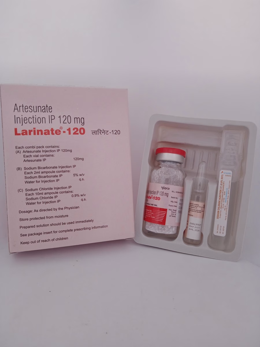 Q: How does LARINATE Injection compare to oral antimalarial medications? A: LARINATE Injection is often used for severe malaria or when oral medications cannot be used. It provides rapid treatment and is typically administered in a healthcare setting.