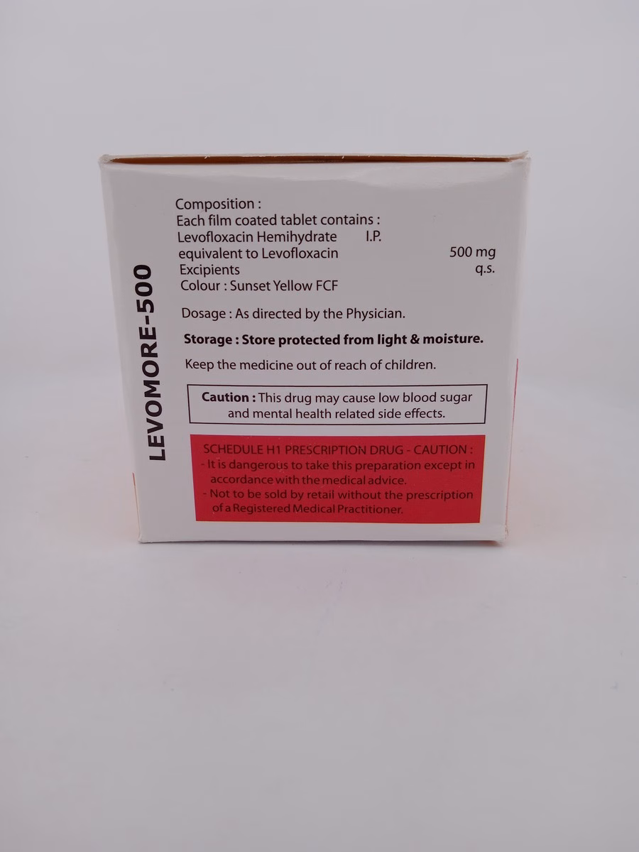 Usage Instructions: Take Levomore 500mg orally as directed by your healthcare provider. It is usually taken once daily with or without food. Ensure you complete the full course of treatment even if symptoms improve to prevent antibiotic resistance.