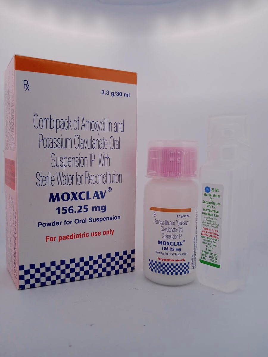 MOXCLAV 156.25 MG is a combination antibiotic designed to treat a variety of bacterial infections, including respiratory tract infections, skin infections, and urinary tract infections. Amoxycillin, a penicillin-type antibiotic, kills bacteria by disrupting their cell wall synthesis. Clavulanic Acid, a beta-lactamase inhibitor, prevents certain bacteria from becoming resistant to Amoxycillin, ensuring the antibiotic remains effective. This combination makes MOXCLAV particularly useful in treating infections caused by antibiotic-resistant bacteria.