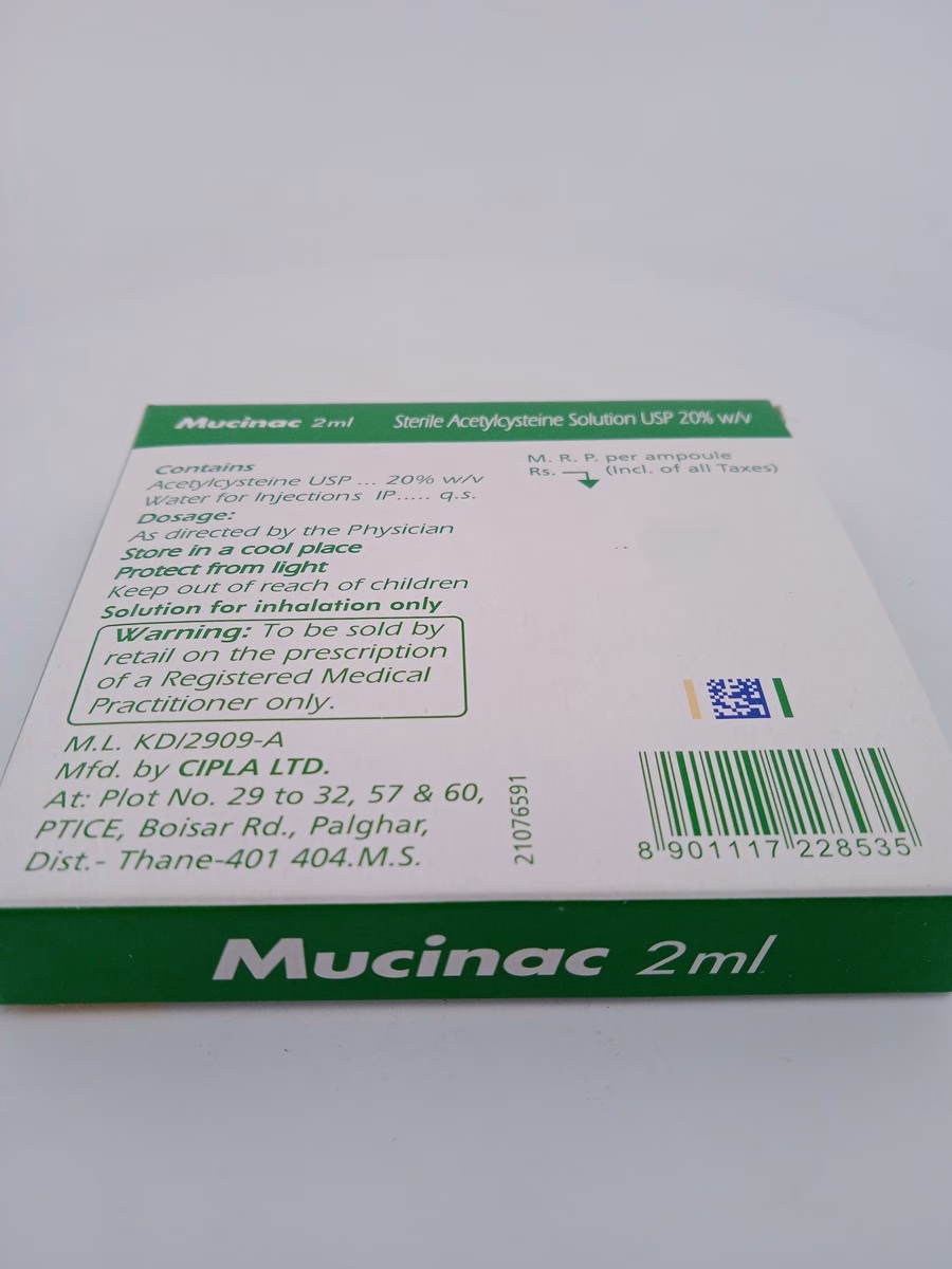 MUCINAC INJECTION provides rapid and effective antidotal action in cases of paracetamol overdose. It helps to protect the liver from severe damage and supports the body’s natural detoxification processes, making it essential for managing overdose emergencies.