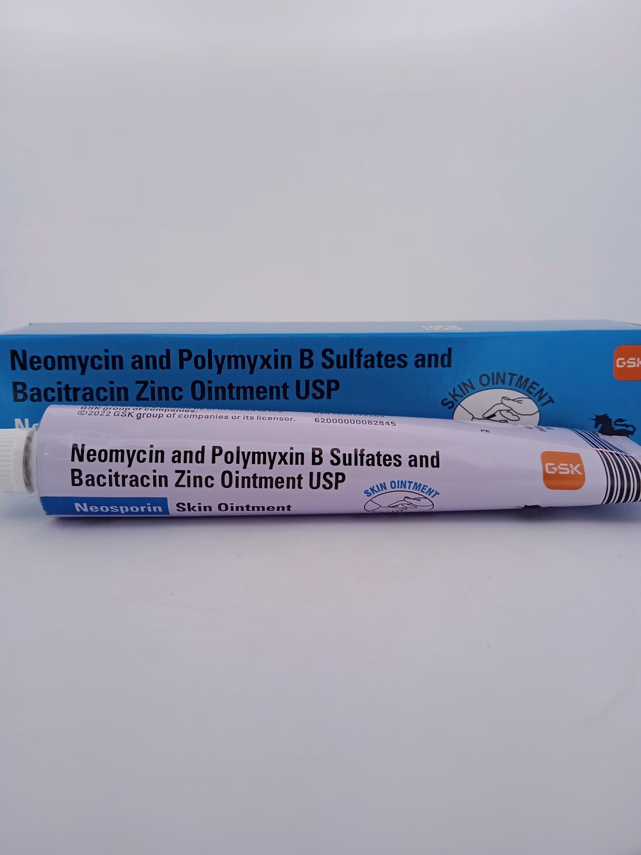 NEOSPORIN Skin Ointment works by using its active ingredients—Neomycin, Polymyxin B, and Bacitracin—to inhibit bacterial growth and kill bacteria at the site of the wound. Neomycin and Polymyxin B disrupt bacterial cell membrane function, while Bacitracin interferes with bacterial cell wall synthesis, providing comprehensive protection against common pathogens.
