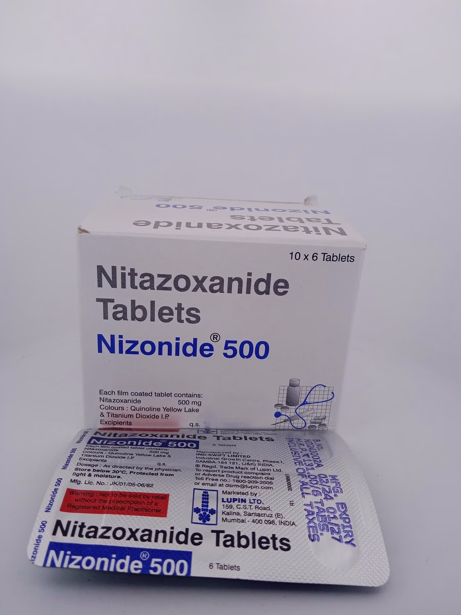 NIZONIDE Tablet contains nitazoxanide, a broad-spectrum antiparasitic agent that is effective against a range of gastrointestinal parasites. It is used to treat diarrhea caused by protozoa and helminth infections, including giardiasis and certain types of worm infections. The medication works by disrupting the energy metabolism of parasites, leading to their elimination and relief from symptoms.