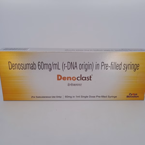 OLIMAB 60 MG contains Denosumab, a monoclonal antibody that works by inhibiting a protein involved in bone breakdown. It is used in treating osteoporosis in postmenopausal women and men who are at an increased risk of fractures. By reducing bone loss and increasing bone density, OLIMAB helps protect against debilitating fractures, especially in the hips and spine.