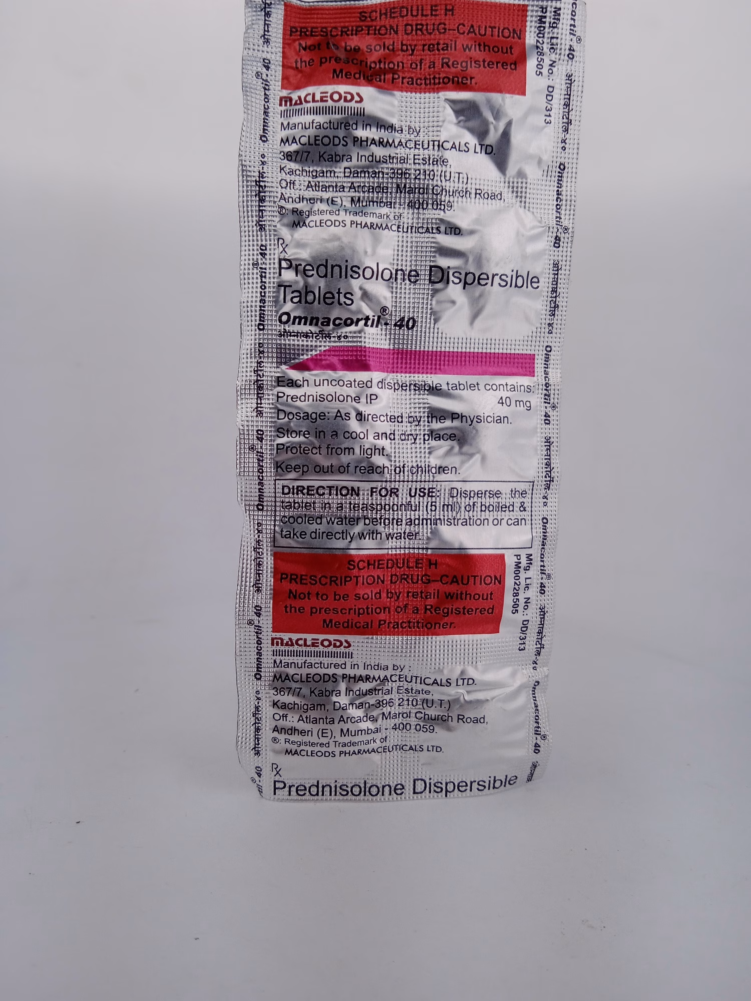 Usage Instructions: Take Omnacortil 40 mg Tablet orally as directed by your healthcare provider, typically with food or milk to minimize stomach discomfort. Adhere strictly to the prescribed dosage and duration of treatment for optimal results. Do not discontinue Omnacortil abruptly without consulting your doctor, as it may lead to withdrawal symptoms.