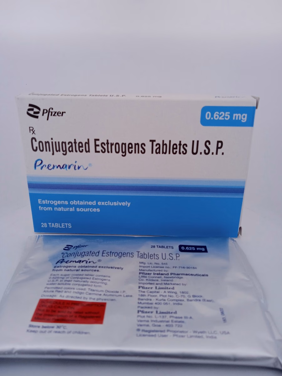 PREMARIN 0.625 MG contains conjugated estrogens that are used primarily for hormone replacement therapy in post-menopausal women. This medication helps alleviate menopausal symptoms such as hot flashes and vaginal dryness while also working to prevent osteoporosis related to estrogen deficiency. By restoring estrogen levels, PREMARIN supports overall hormonal balance and bone density maintenance.