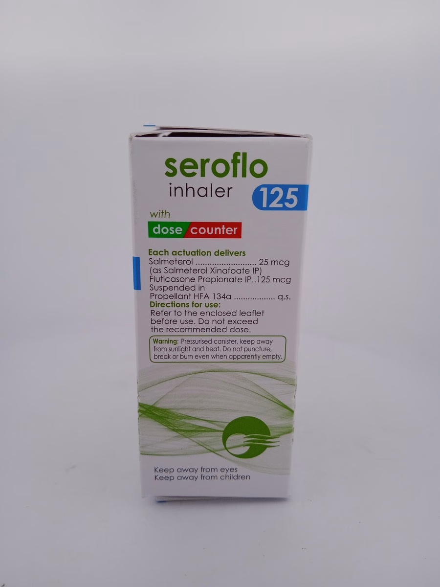SEROFLO 125 INHALER combines two active ingredients: fluticasone propionate and salmeterol. Fluticasone is an inhaled corticosteroid that reduces inflammation and swelling in the airways, helping to prevent asthma and COPD symptoms. Salmeterol is a long-acting beta-agonist that relaxes the muscles around the airways, making breathing easier. This combination therapy helps control chronic respiratory conditions, reducing both the frequency and severity of symptoms.