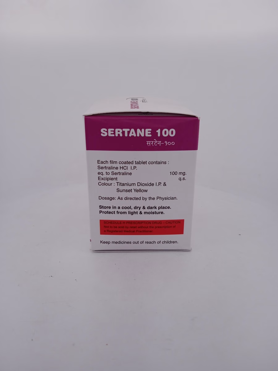 SERTANE 100 MG contains sertraline, a selective serotonin reuptake inhibitor (SSRI) that increases serotonin levels in the brain. This action helps alleviate symptoms of depression, anxiety, and other disorders such as PTSD, OCD, panic disorder, and premenstrual dysphoric disorder (PMDD). With a strong safety profile, SERTANE 100 MG is a reliable option for managing a wide range of mental health issues.