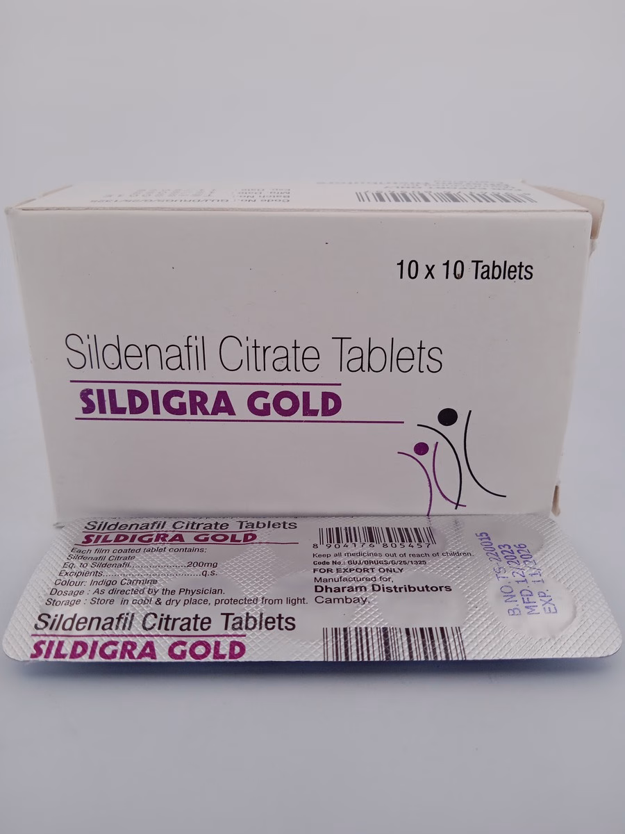 Mechanism of Action: Sildigra Gold 200mg works by inhibiting the enzyme phosphodiesterase type 5 (PDE5), leading to increased levels of cyclic guanosine monophosphate (cGMP) in the corpus cavernosum. This enhances smooth muscle relaxation and increases blood flow to the penis, facilitating erections.