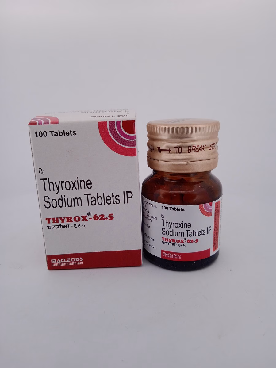 THYROX 62.5 MCG contains levothyroxine, a synthetic form of the thyroid hormone thyroxine (T4). This medication is used to replace or supplement insufficient thyroid hormones in individuals with hypothyroidism. By normalizing thyroid function, THYROX 62.5 MCG manages metabolism and alleviates symptoms such as fatigue, weight gain, and depression.