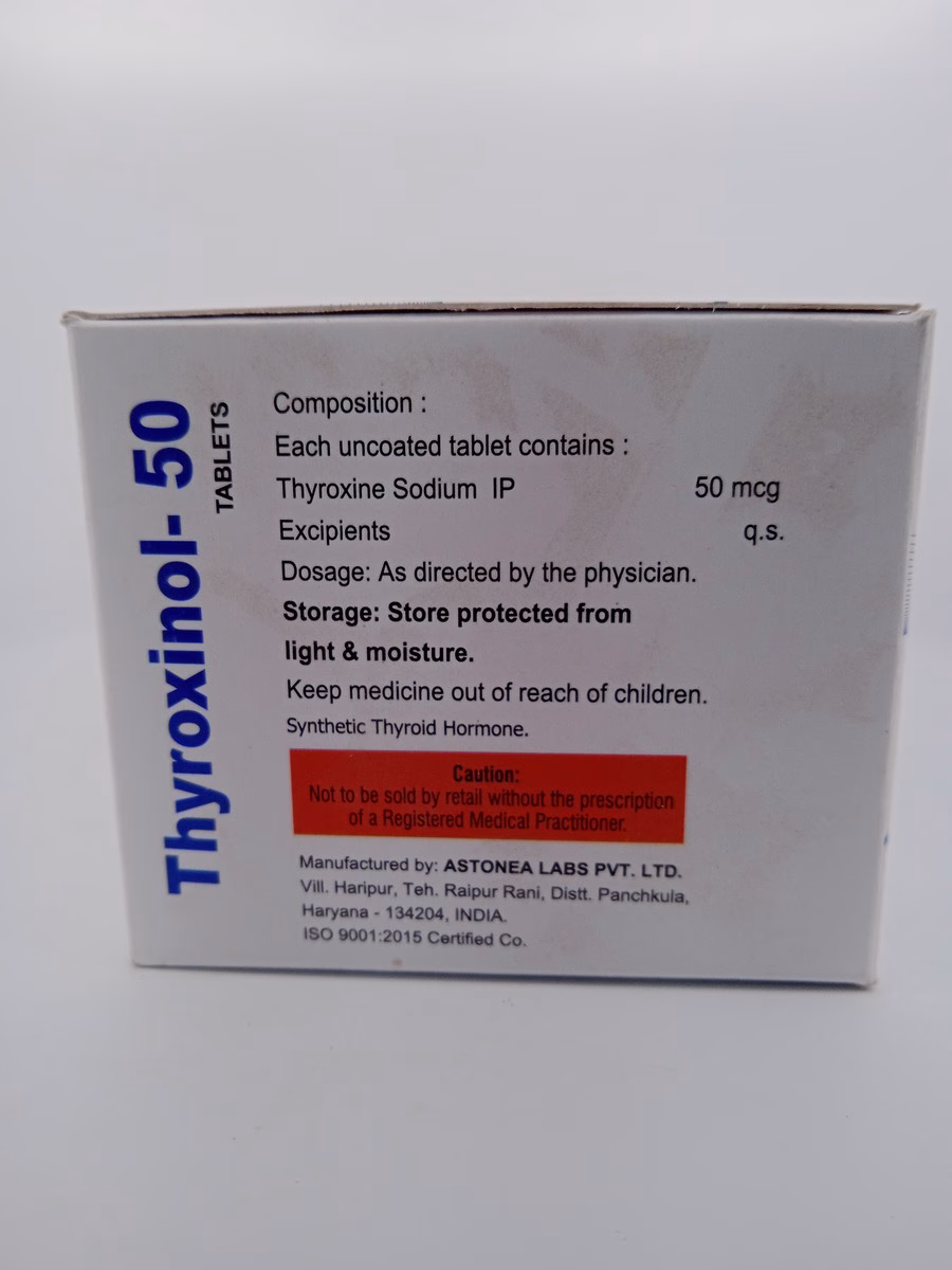 Storage Conditions: Store Thyroxinol 50mg in a cool, dry place away from direct sunlight. Keep the bottle tightly closed and out of reach of children to maintain its quality and potency.