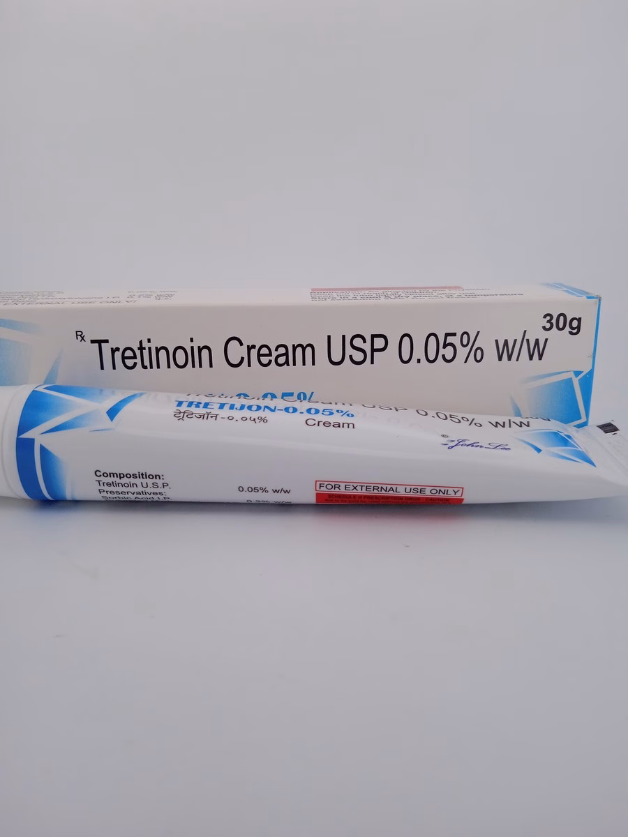 Mechanism of Action: TRETINOIN 0.05% works by binding to retinoic acid receptors in the skin, regulating cell growth and differentiation. This process promotes the shedding of dead skin cells, unclogs pores, and stimulates collagen production, ultimately improving skin texture and appearance.