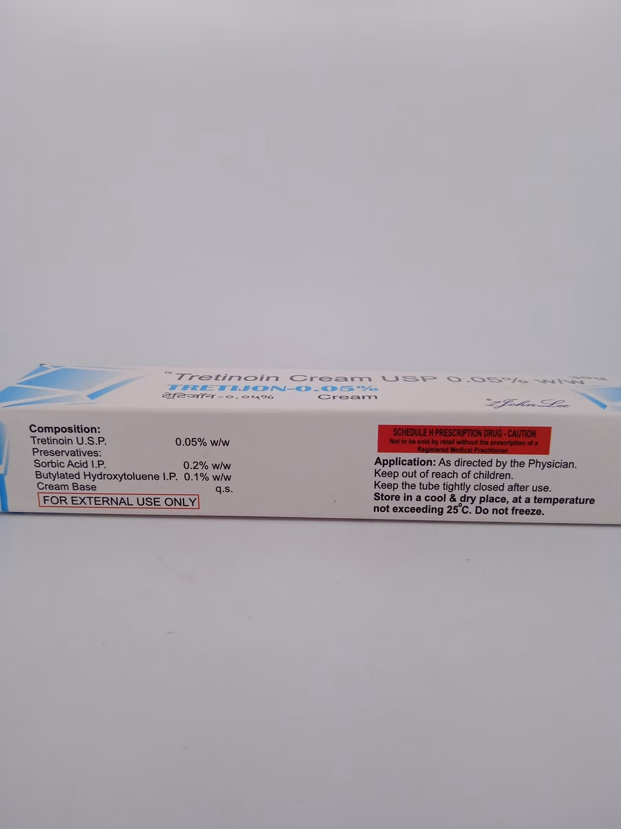 TRETIJON-0.05% Cream is a dermatologist-recommended solution for improving skin texture and reducing signs of aging. Its active ingredient, TRETINOIN 0.05%, stimulates collagen production, promoting cell turnover for a fresher, more youthful appearance.