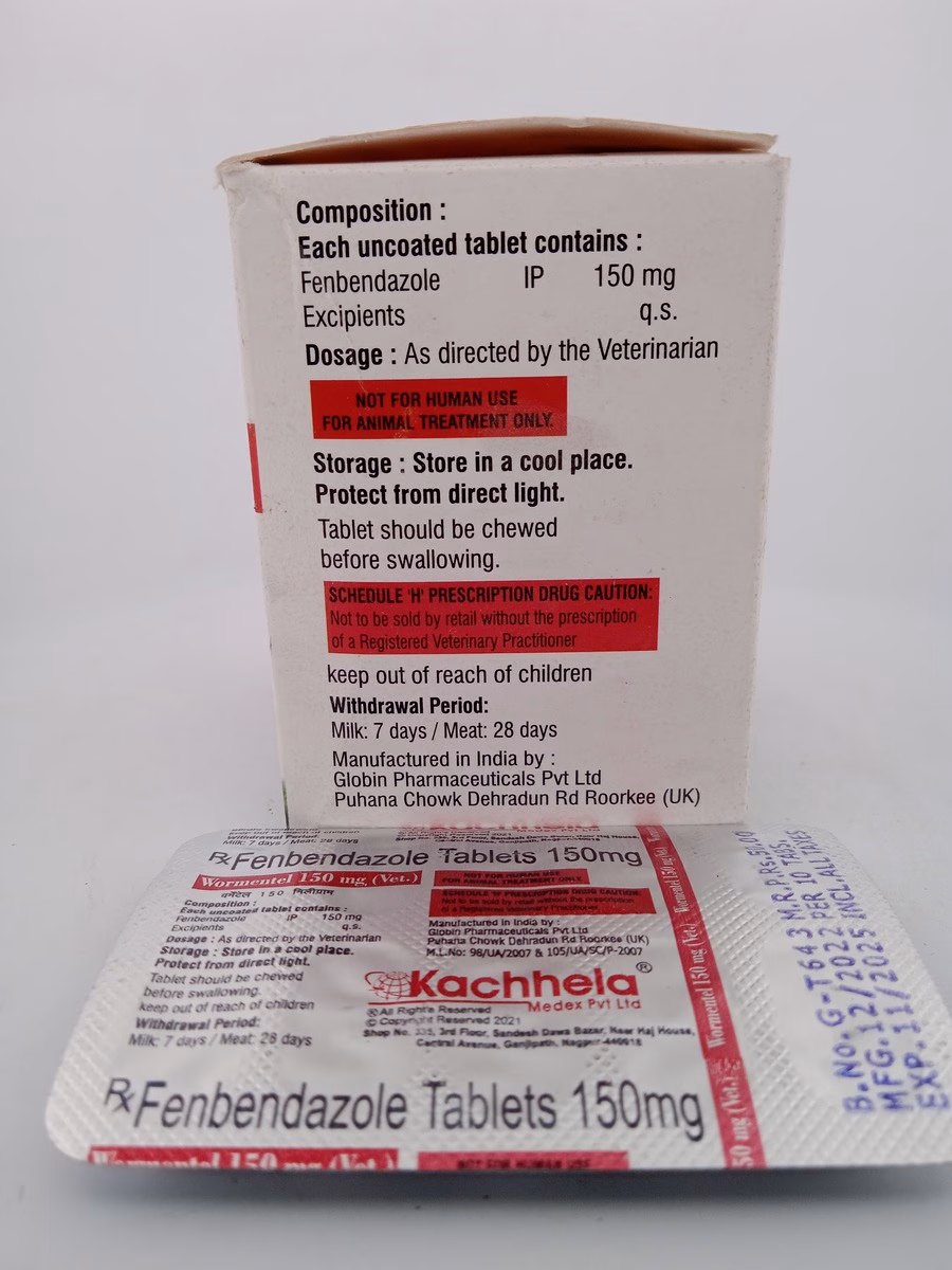 Wormentel 150mg leverages Fenbendazole150mg’s potent action to eliminate internal parasites, ensuring your pet’s digestive health and overall well-being. Its carefully crafted formula targets a wide range of parasites, making it a trusted choice among veterinarians and pet owners alike.